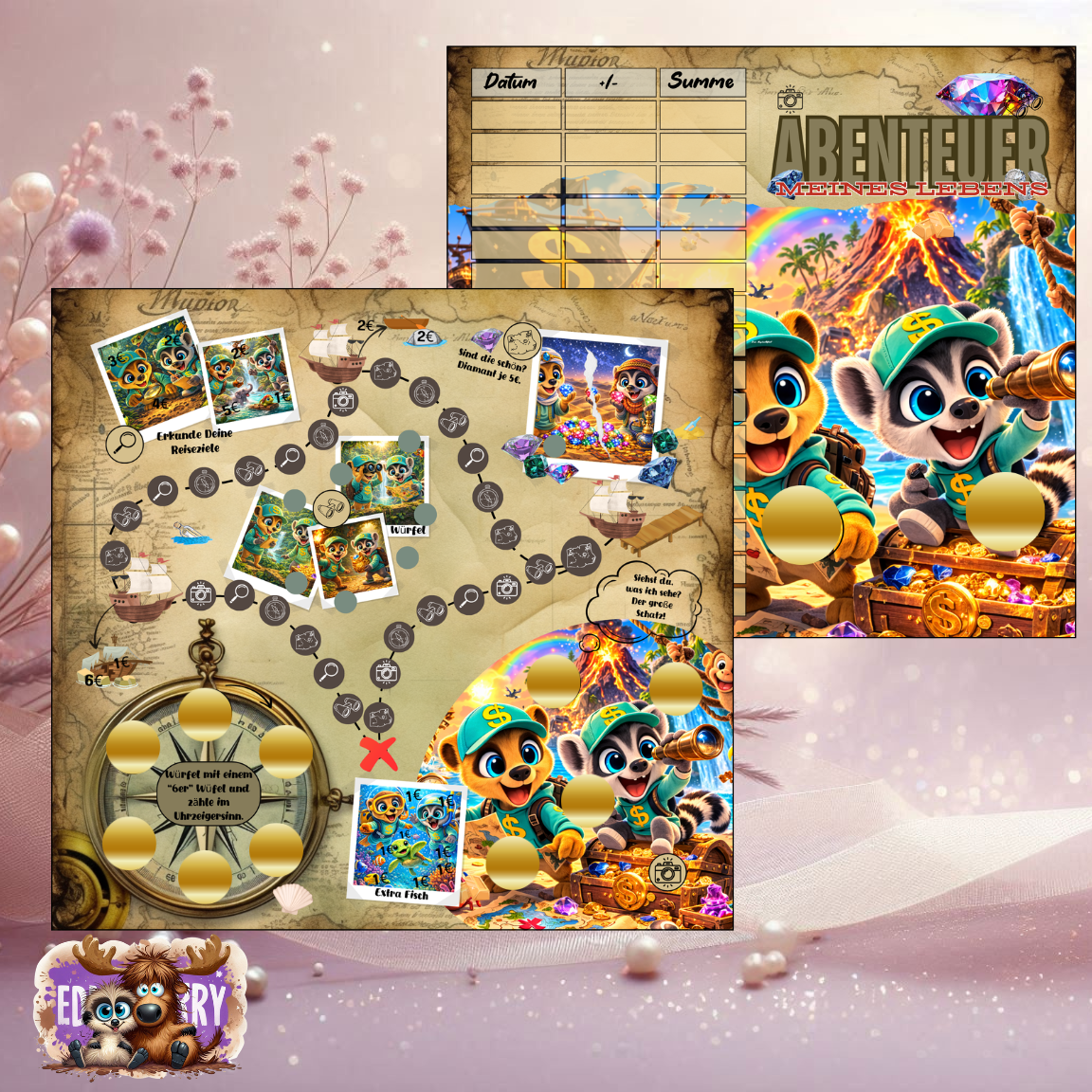 Mit dieser liebevoll gestalteten A6 Klappkarten Spar-Challenge „Abenteuer meines Lebens“ wird Sparen zu einer spannenden Schatzsuche. 🗺️💎