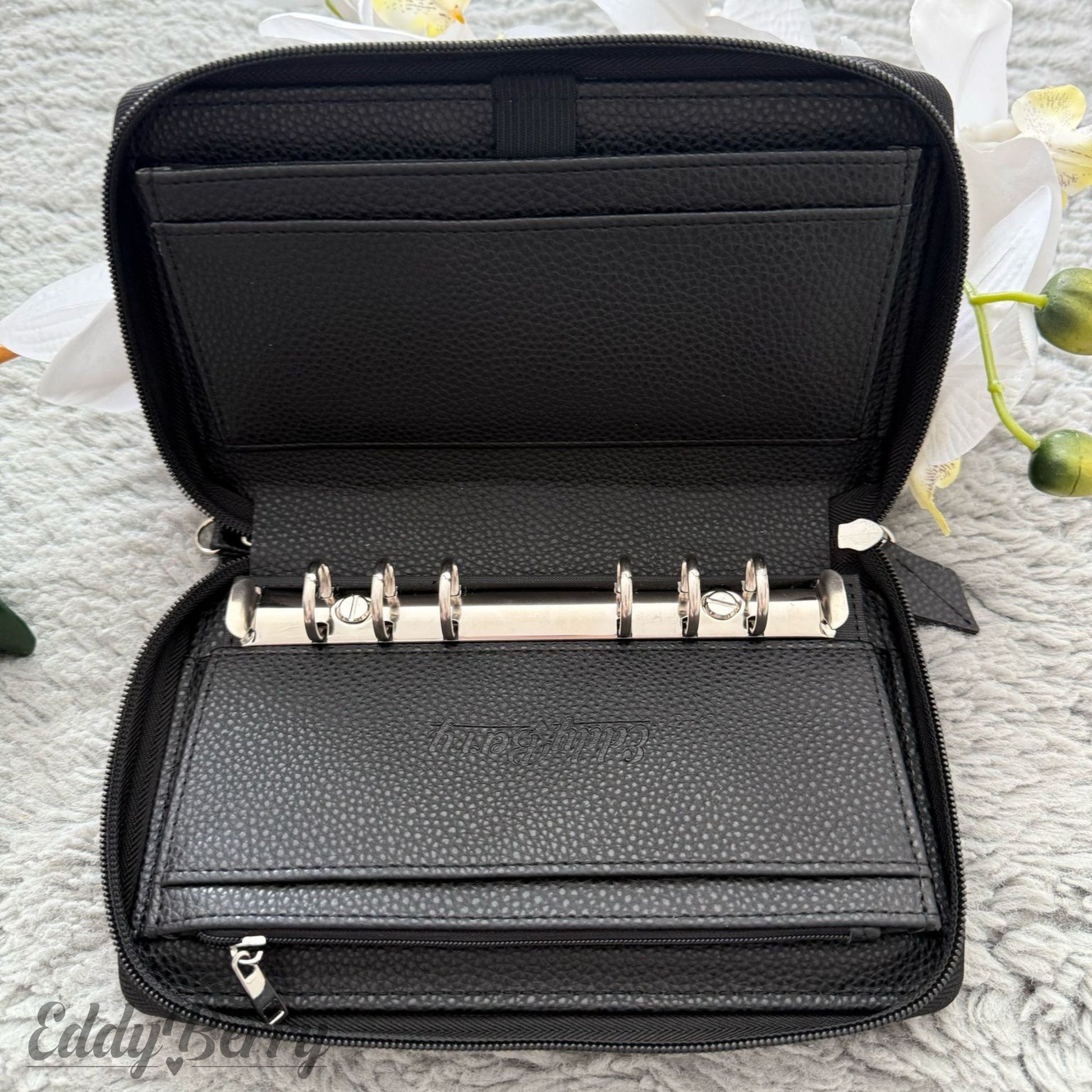 Elegant, zeitlos und absolut vielseitig – das Modell Blackpool vereint Funktionalität mit edlem Design. Die schwarze Außenseite aus hochwertigem, strukturiertem Kunstleder vermittelt Professionalität und Stil. Im Inneren sorgt ein stabiles 6-Ring-Mechanismus in Silber für sicheren Halt deiner A6-Einlagen. Die praktische Handgelenkschlaufe ermöglicht dir, den Planer auch unterwegs bequem zu tragen. Ideal für Business, Schule oder Alltag – Blackpool ist dein verlässlicher Begleiter.