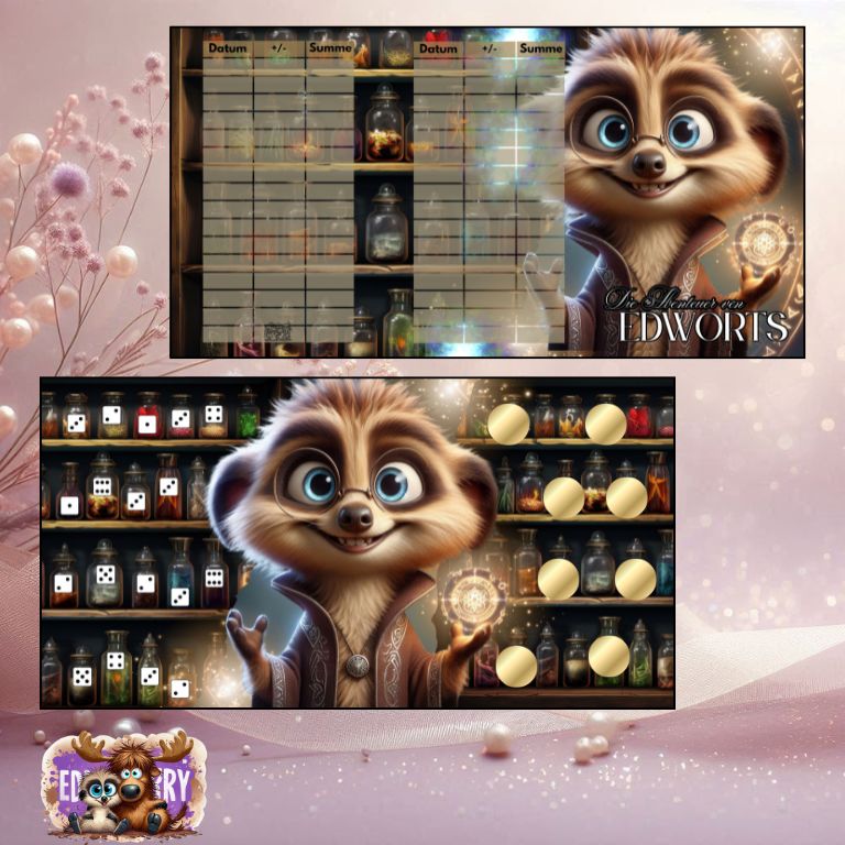 Mach das Sparen zu einem besonderen Erlebnis mit der magischen Sparkarte von EDWORTS! Begleite den niedlichen Alchemisten auf deiner ganz persönlichen Sparreise und rubbele dich Schritt für Schritt zu deinem Ziel.