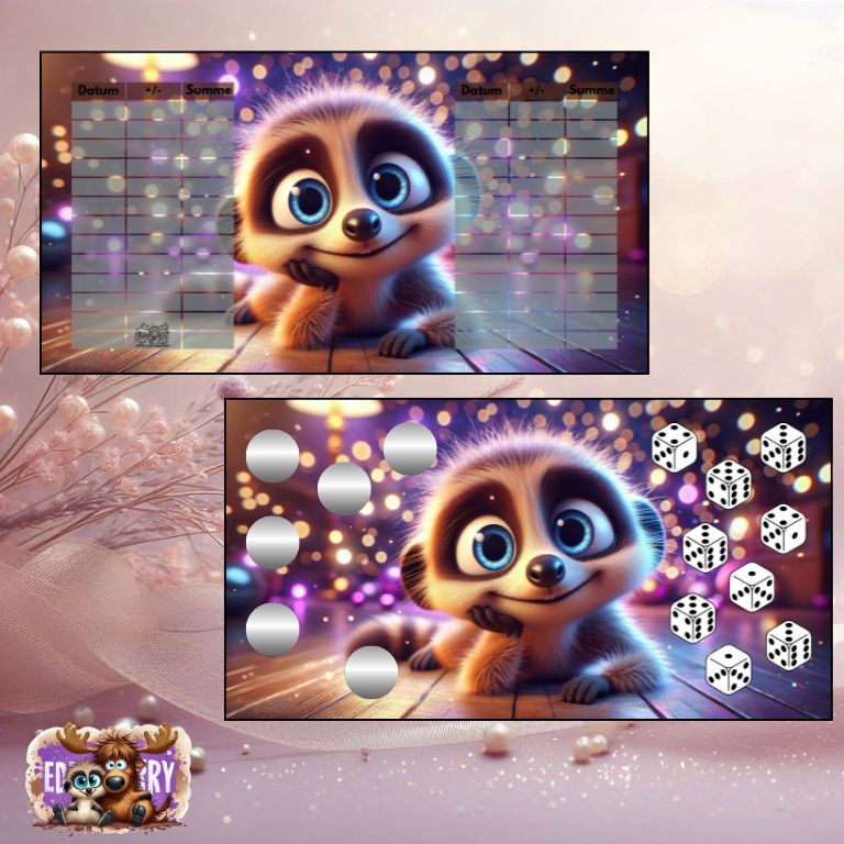 Sparen mit Spannung! Diese farbenfrohe Rubbel- und Würfel-Challenge kombiniert verschiedene Elemente, um das Sparen unterhaltsam zu gestalten. Rubble ein Feld frei oder würfle – und spare den entsprechenden Betrag. Mit Eddy als niedlichem Begleiter ist Motivation garantiert!