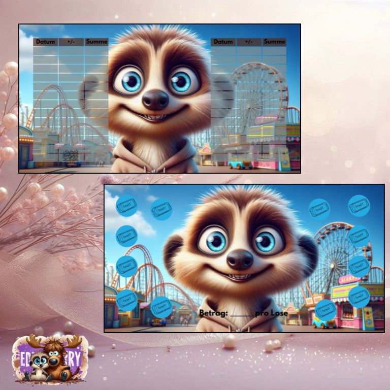 Mach deinen nächsten Ausflug unvergesslich – und spare spielerisch darauf hin! Diese süße Spar-Challenge mit Eddy im Freizeitpark-Design lässt dich pro Ticket einen beliebigen Betrag zur Seite legen. Trage einfach selbst den Sparbetrag ein, den du pro Los sparen möchtest. Ideal, um für den nächsten Freizeitparkbesuch oder Ausflug motiviert zu bleiben!