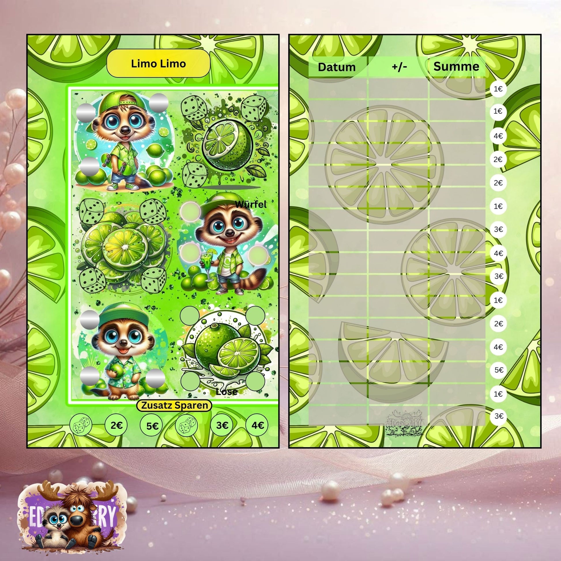 🍋 Erfrischendes Design: Leuchtende Limetten, sommerliche Farben und verspielte Elemente machen das Sparen zum optischen Genuss.