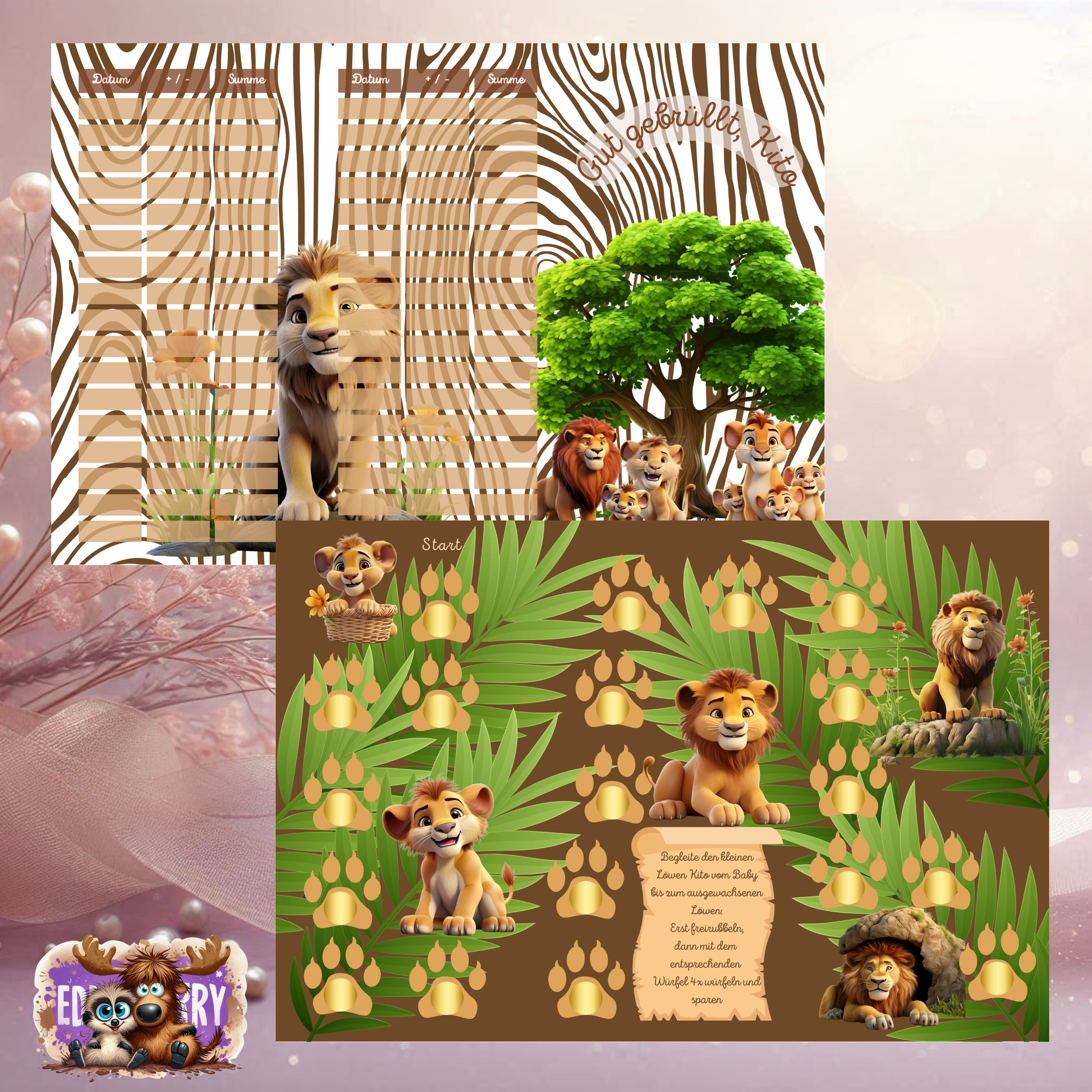 Gemeinsam mit dem kleinen Löwen Kito würfelst du dich Schritt für Schritt zu deinen Sparzielen – bis du am Ende wie ein wahrer Löwe stolz auf deine Erfolge blicken kannst.