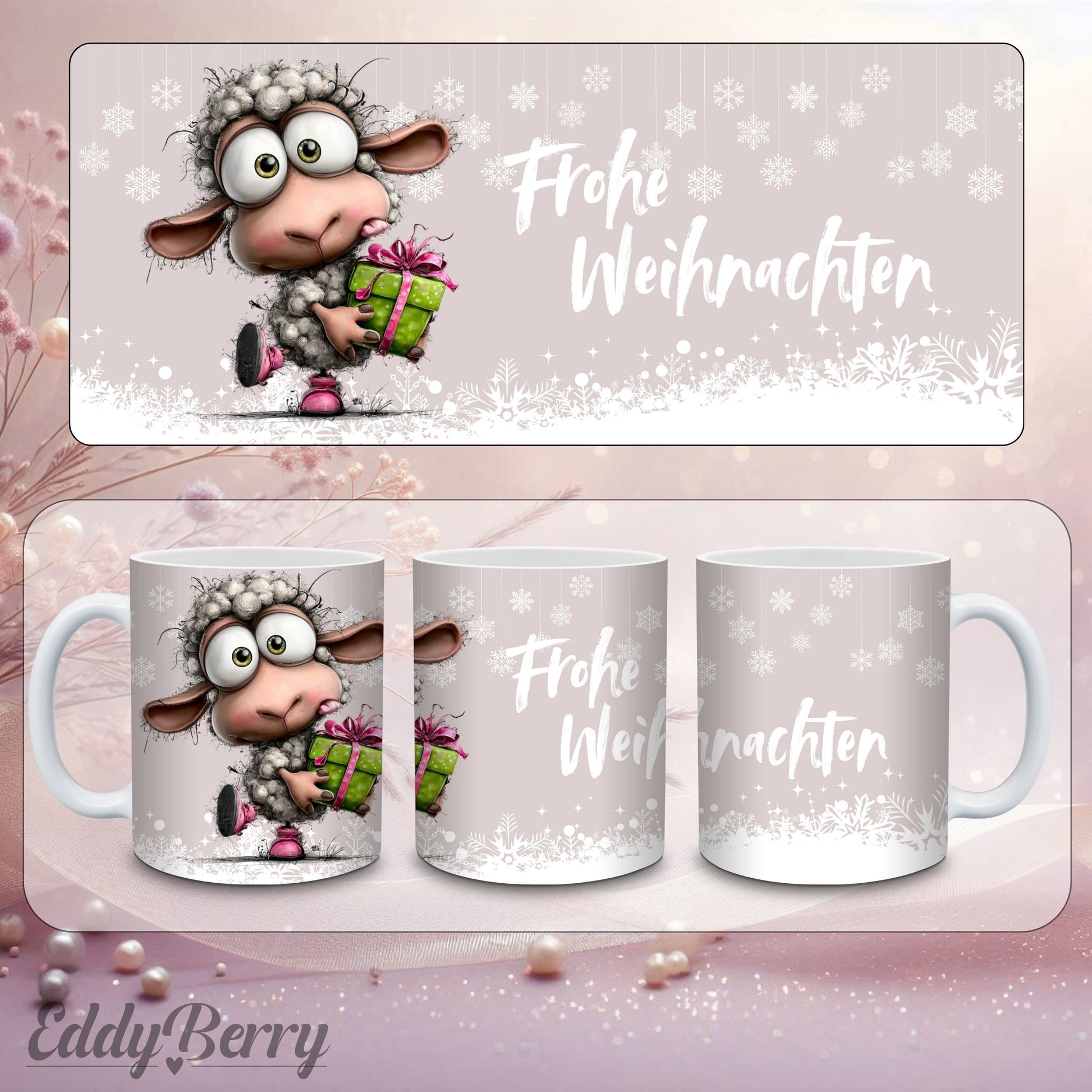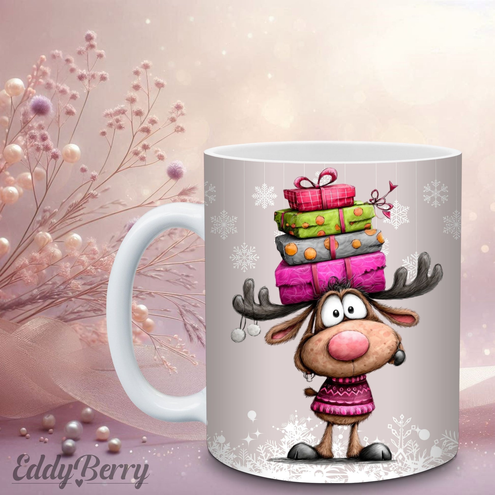 Hochwertiger Keramikbecher mit farbintensivem Sublimationsdruck im festlichen EddyBerry® Weihnachtsdesign.
