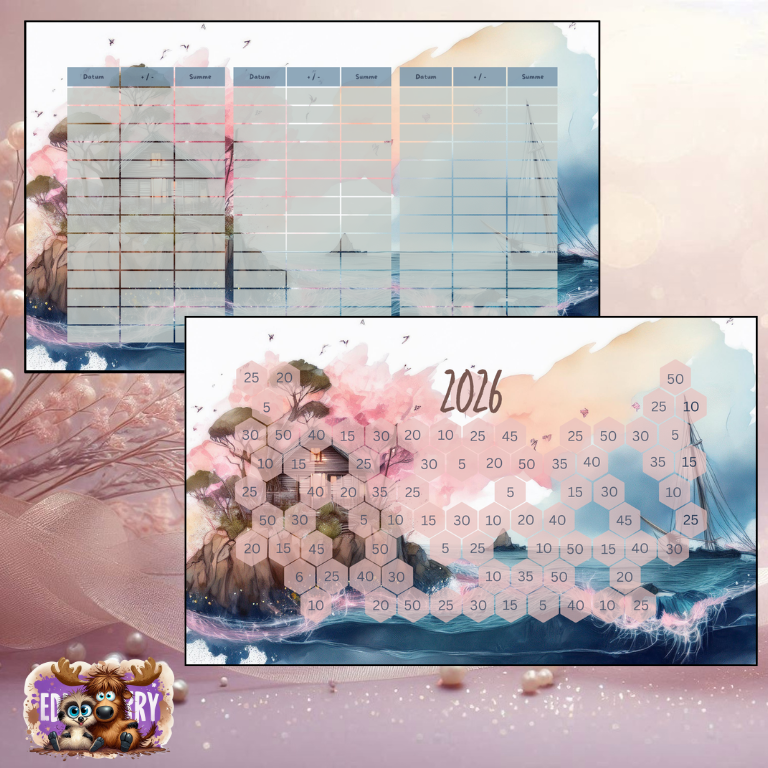 Mit klaren Feldern für Datum, Beträge und Fortschritte behältst du jederzeit den Überblick – ganz ohne Druck, dafür mit viel Leichtigkeit. Jeder abgehakte Betrag ist ein kleiner Erfolgsmoment auf deinem Weg zu größeren Zielen. 💗