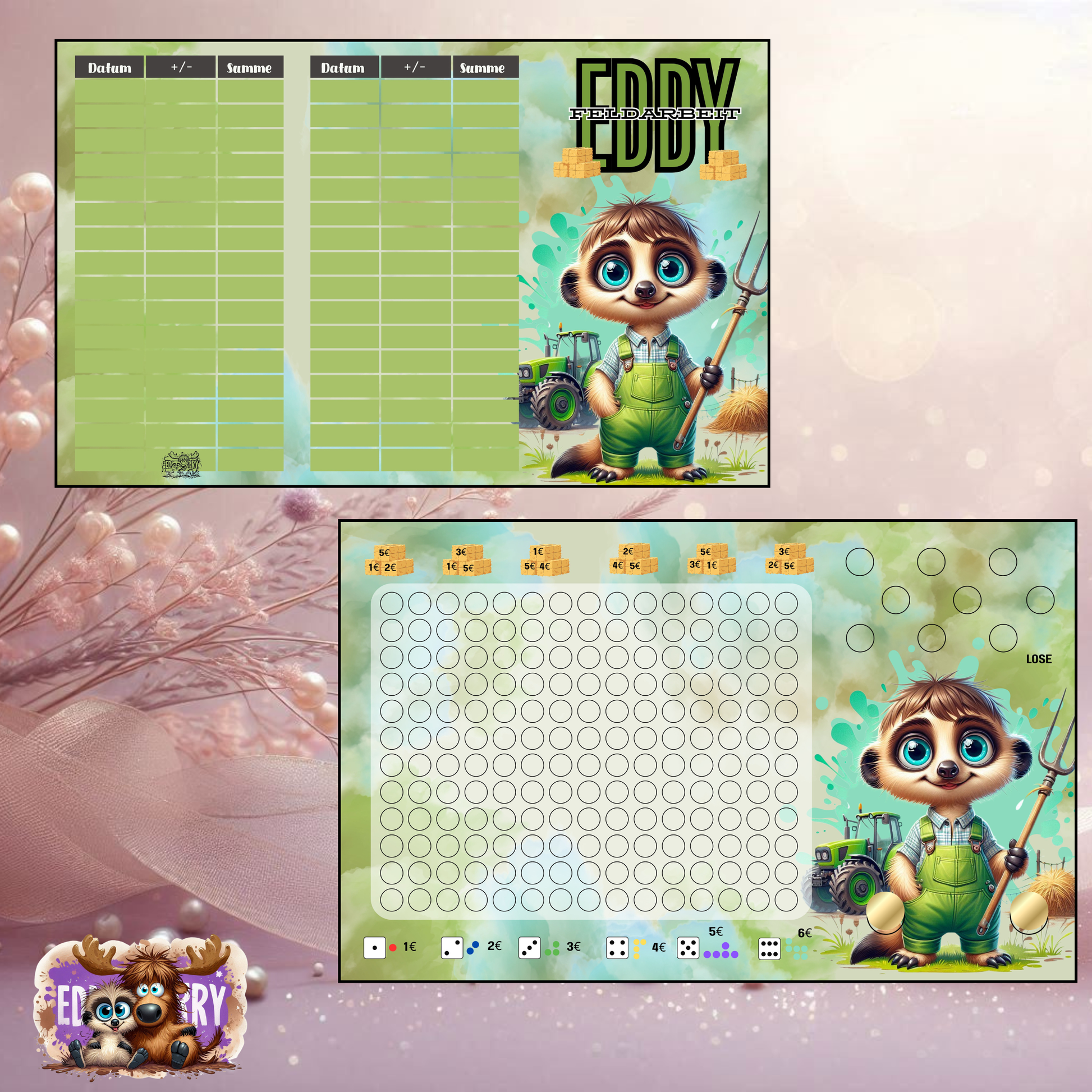 Eine liebevoll gestaltete Spar-Challenge mit Bauernhof-Feeling! Eddy schwingt die Mistgabel und hilft dir, systematisch – und mit einer Prise Spaß – deine Ziele zu erreichen.