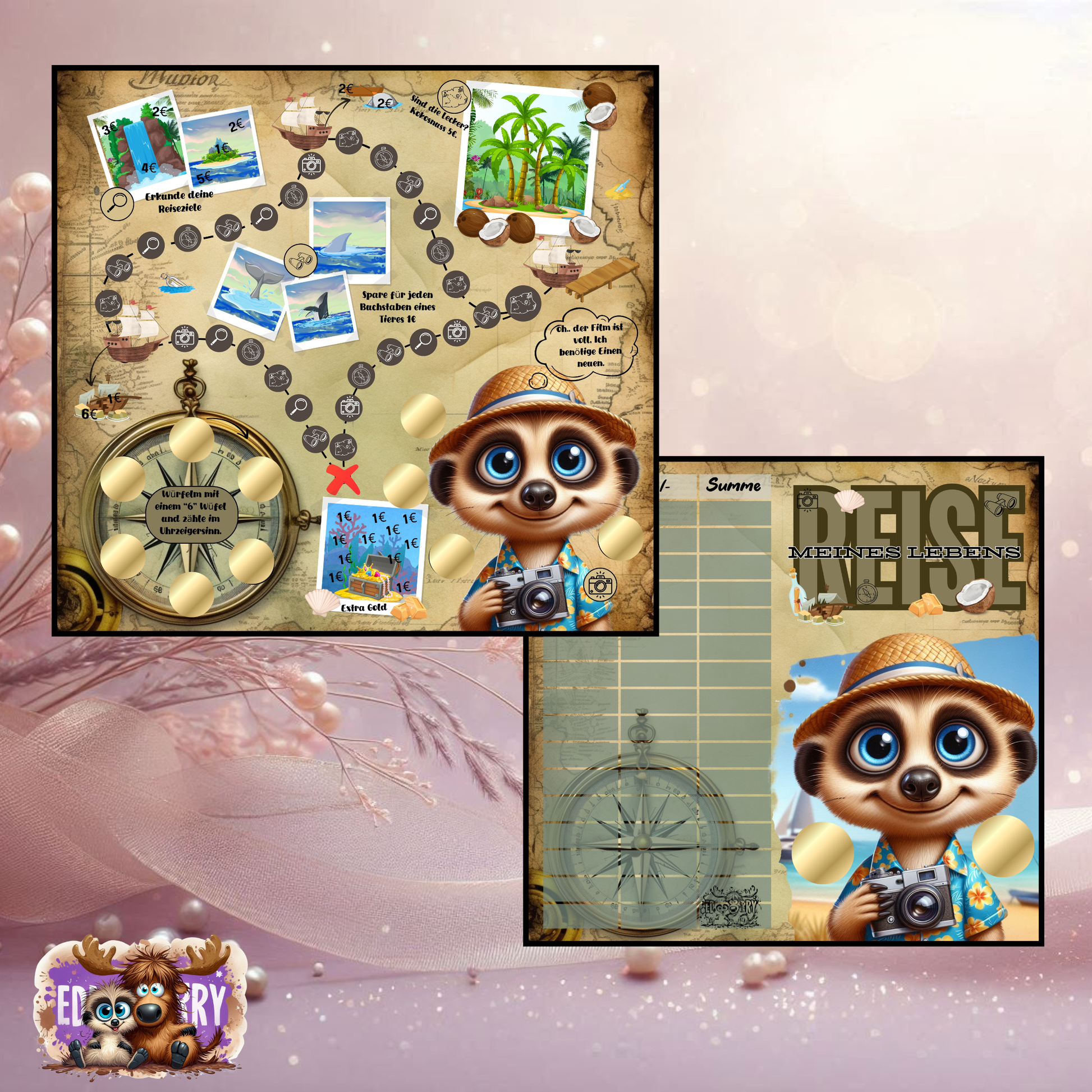 Begib dich mit Eddy auf eine aufregende Reise zu exotischen Inseln, tauche ins blaue Meer und probiere köstliche Spezialitäten! Mit dieser Rubbel-, Abstreich- & Würfel-Challenge sparst du spielerisch für deine nächste große Reise und erlebst dabei spannende Aufgaben.